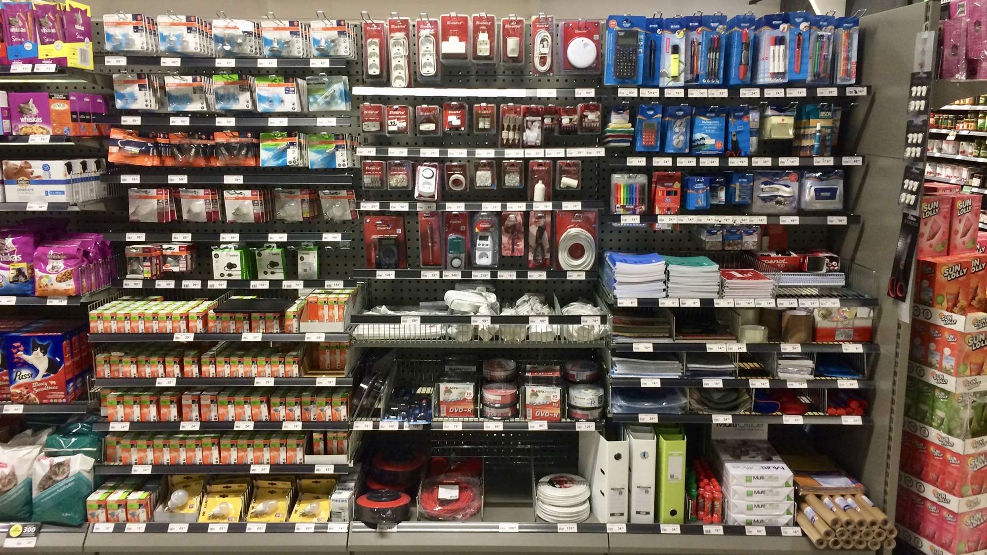 The nonfood items we sell are e.g. bulbs, batteries, electrical supplies, office supplies, flashlights, mobile phone accessories, tools, tape, copy paper, envelopes, glasses, razor blades, cleaning supplies, hair ornaments, sunscreen, lighters, auto accessories and much more. Coffee and pet supplies are also part of our range